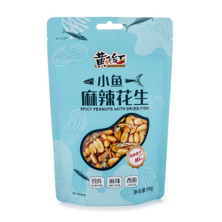 HuangFei Mala Spicy Peanuts with Dried Dilis Fish - 98 grams